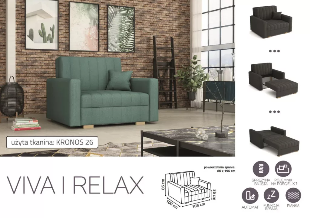 VIVA Relax I. előre nyíló fotelágy Kronos 26 színben