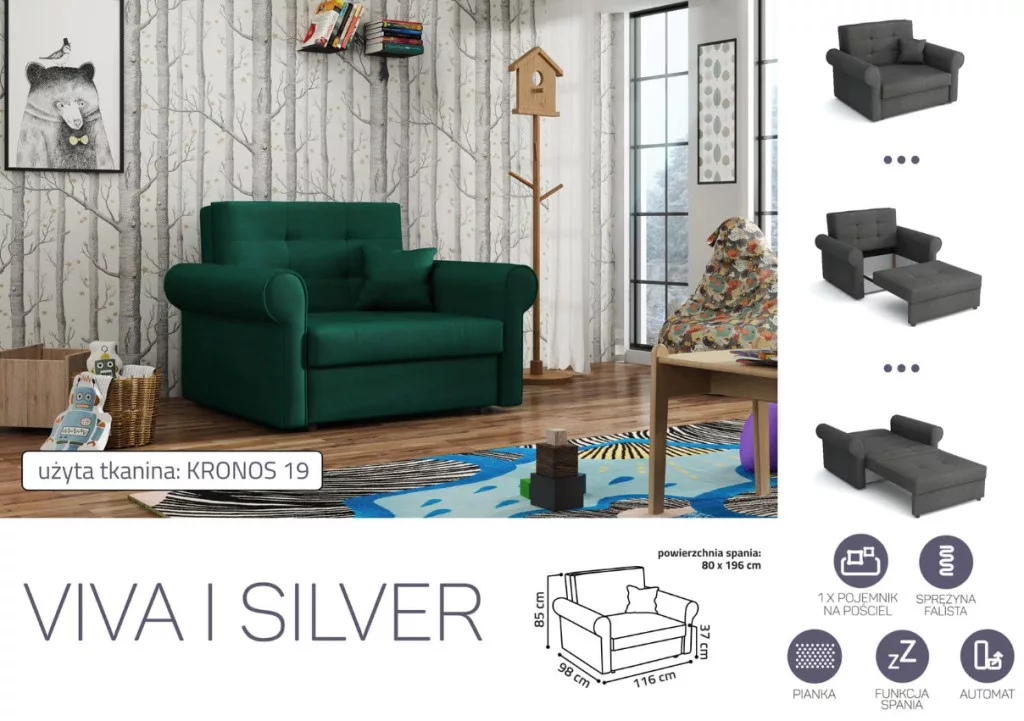 VIVA SILVER I. előre nyíló rugós fotelágykronos 19 színben