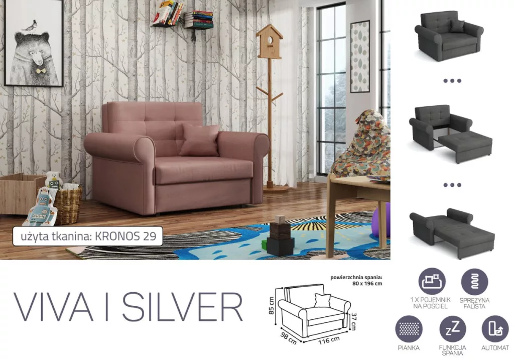 VIVA SILVER I. előre nyíló rugós fotelágykronos 29 színben