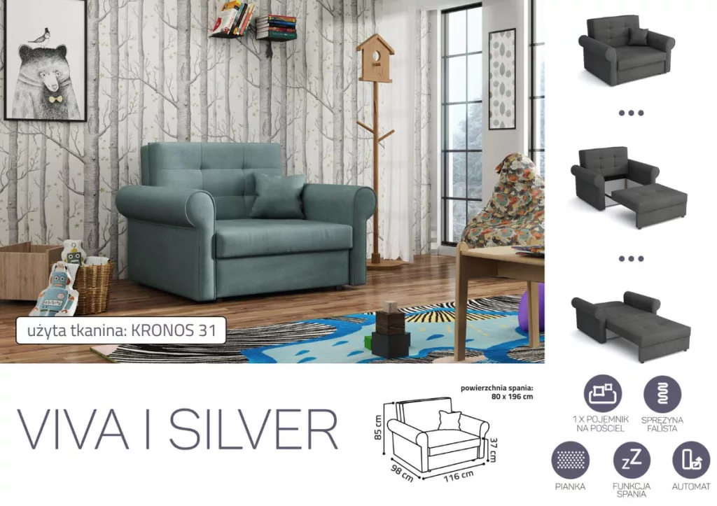 VIVA SILVER I. előre nyíló rugós fotelágykronos 31 színben