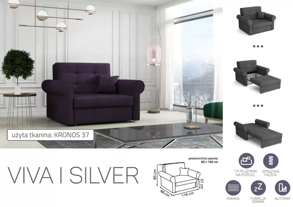 VIVA SILVER I. előre nyíló rugós fotelágykronos 37 színben