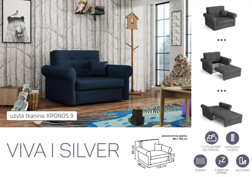 VIVA SILVER I. előre nyíló rugós fotelágykronos 9 színben