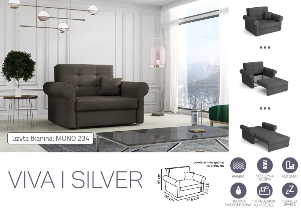VIVA SILVER I. előre nyíló rugós fotelágy Mono 234 színben