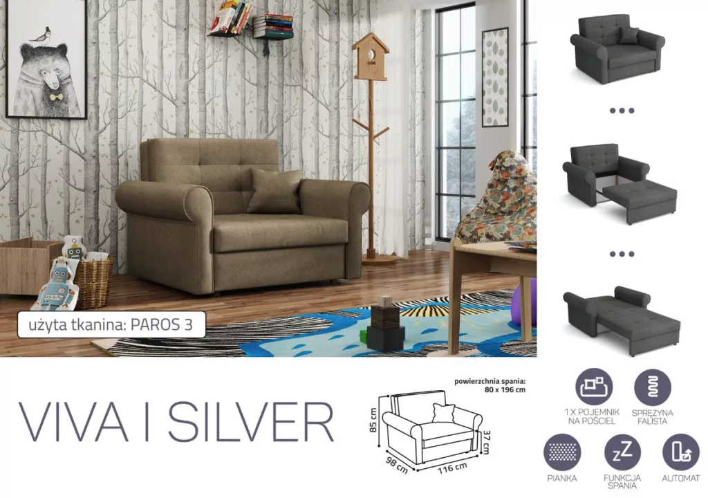 VIVA SILVER I. előre nyíló rugós fotelágy Paros 3 színben