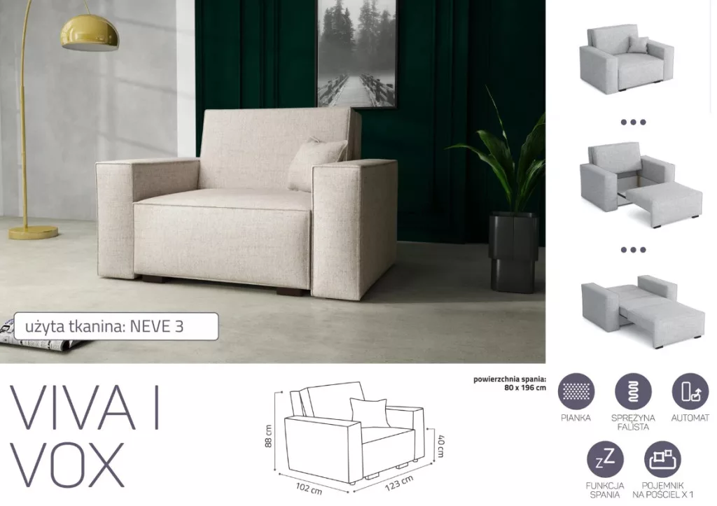 VIVA Vox I. előre nyíló fotel Neve 3 színben