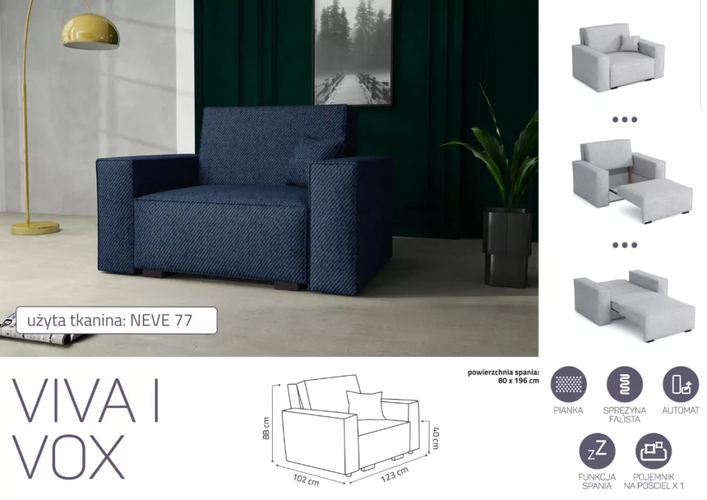VIVA Vox I. előre nyíló fotel Neve 77 színben