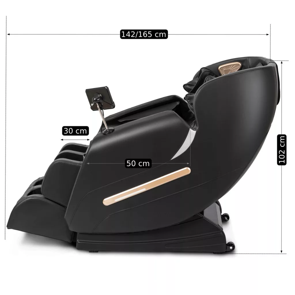 VX MAX masszázsfotel fekete színben. Álmodozik egy wellness-élményről, de nincs ideje ellátogatni? Pihenjen otthonában a VX MAX masszázsfotelben! Ez a modern bútordarab nemcsak tiszta elegancia, hanem a kikapcsolódás igazi oázisa is. A szék mélyfekete színe kifinomultságot és eleganciát kölcsönöz otthonának. Azonban nem csak a megjelenése teszi egyedivé. A luxus kárpitozás alatt fejlett masszázstechnológia rejtőzik, amely egyenesen a legjobb wellness szalonba repít. Mi teszi különlegessé a VX MAX masszázsfotelt? Fekete öko-bőr kárpitozás; fűtési funkció az ülésben és a háttámlában, amely segít javítani a vérkeringést és ellazítani az izmokat; fejlett masszázsfunkciók széles választékú technikákkal, amelyek lehetővé teszik a tökéletes alkalmazkodást minden felhasználó igényeihez.