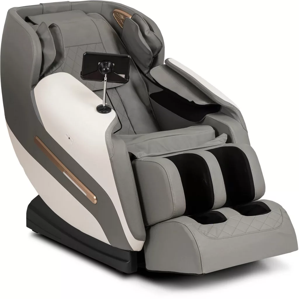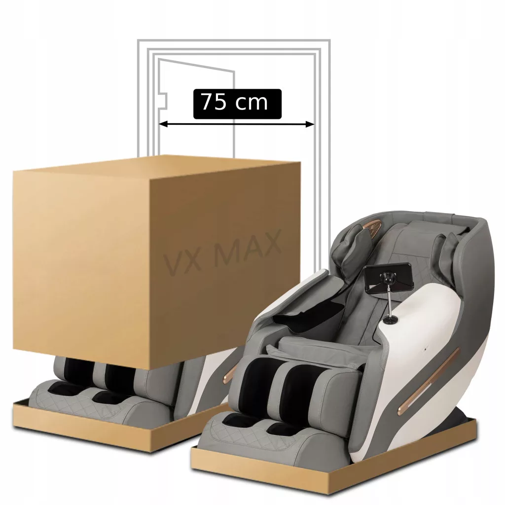 VX MAX masszázsfotel szürke és fehér színben. Álmodozik egy wellness-kirándulásról, de mindig kevés az ideje? Itt az ideje egy igazi forradalomnak otthonában – bemutatjuk a VX MAX masszázsfotelt! Nemcsak hihetetlenül elegánsnak tűnik, hanem – és talán mindenekelőtt – kényelmet és ellazulást biztosít, akárcsak a legkiválóbb wellness-központokban. Győződjön meg róla saját szemével! A VX MAX masszázsfotel megkülönböztető jellemzői: szürke és fehér öko-bőr kárpitozás; beépített fűtés a háttámlában és az ülésben, amely segít ellazítani az izmokat és javítja a vérkeringést;