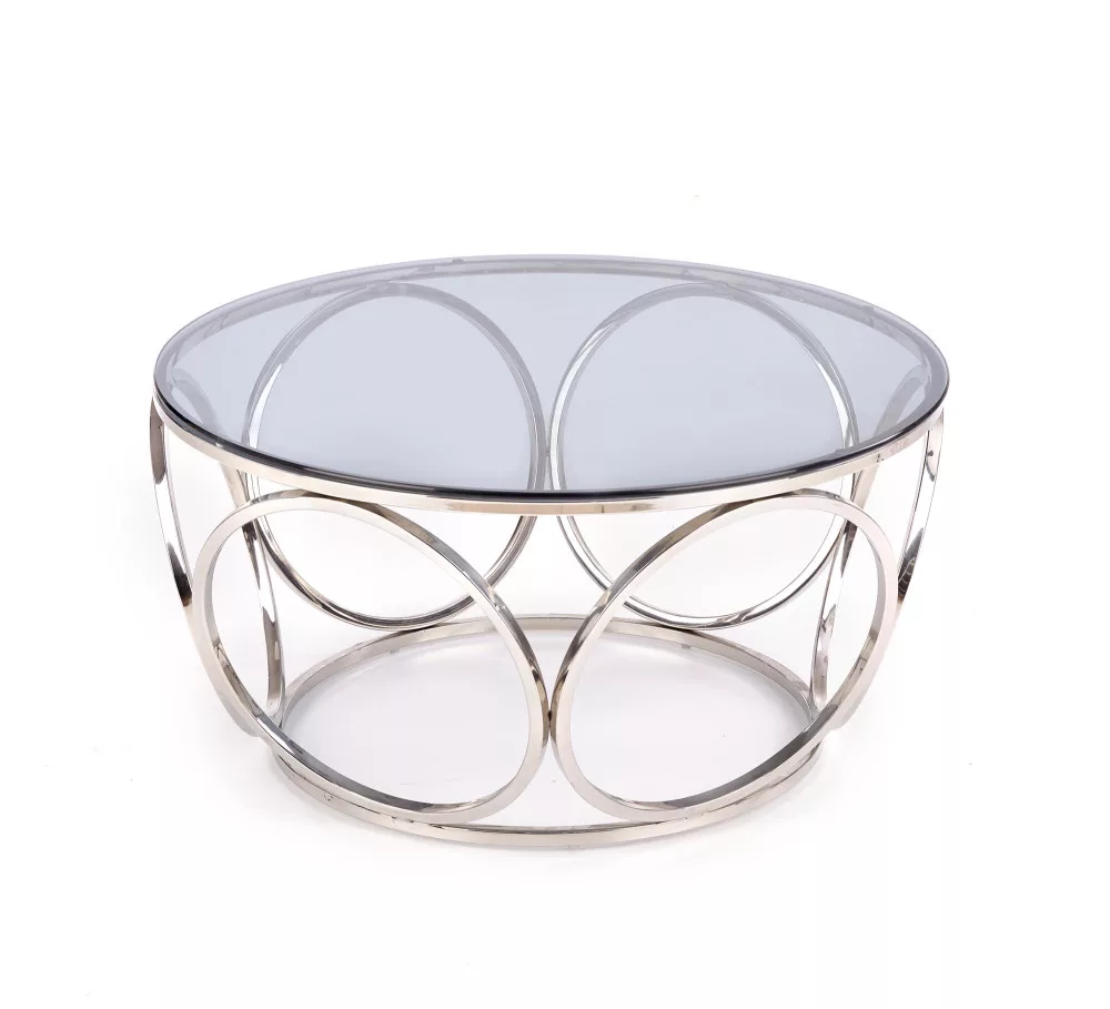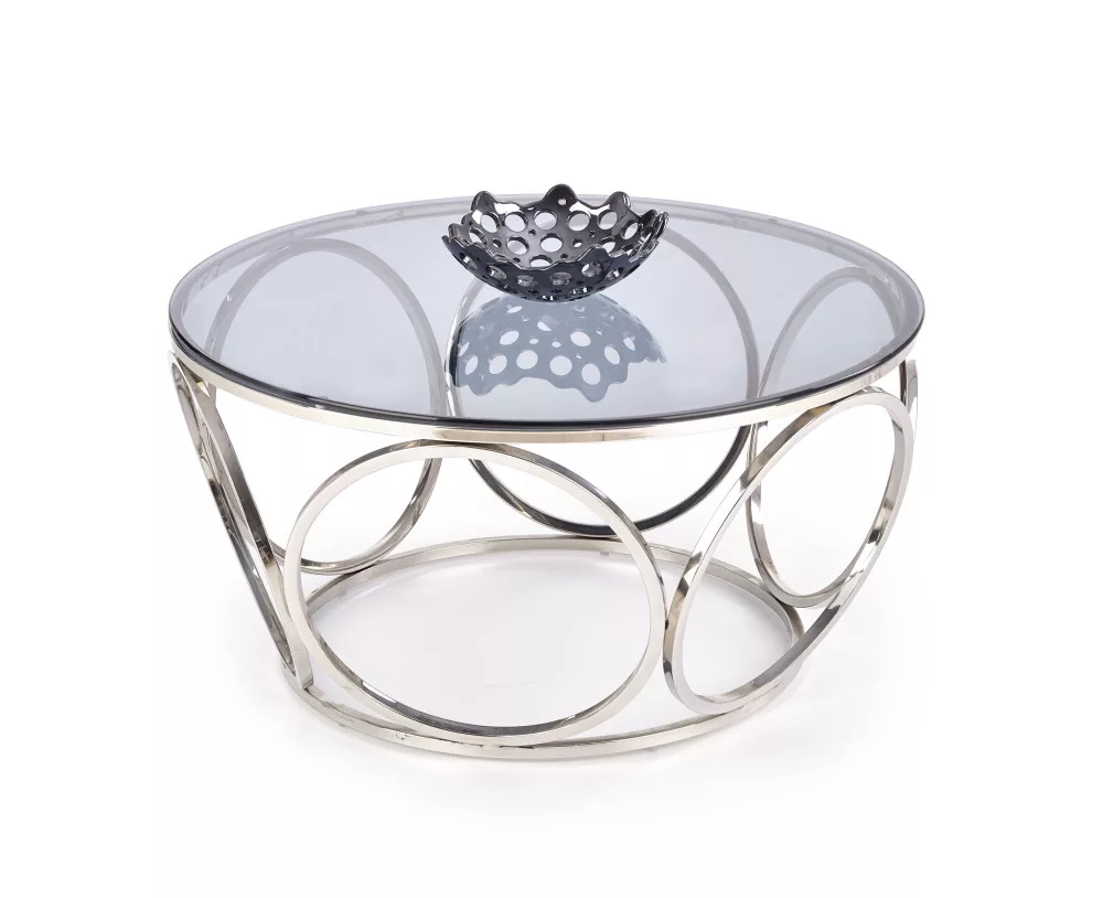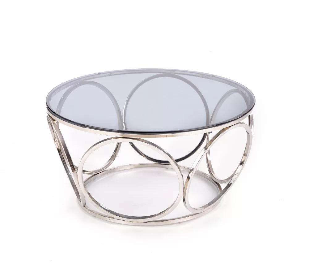 Elegáns megjelenésű, modern kialakítású dohányzóasztal. A füst színű asztallap üvegből, míg az ezüst színű láb krómból készült.