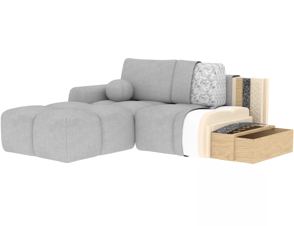 Vittario sarokkanapé egy modern és funkcionális bútordarab, amelyet a maximális kényelem érdekében terveztek. Kockás alakja és lágy vonalai tökéletesen illeszkednek a modern belsőépítészeti megoldásokhoz. A darab mérete 227 × 170 × 95 cm, súlya 115,4 kg, így stabilitást és hosszú élettartamot biztosít. Az ülőfelület B típusú hullámrugóval, HR3030 és T2315 habbal van kitöltve. A háttámla habgranulátummal töltött párnákból áll, amelyek alkalmazkodnak a testhez és puha, pihentető kényelmet biztosítanak. A kanapé 95 × 205 cm-es felületű alvási funkcióval, valamint DL mechanizmussal van felszerelve, amelynek rugója segíti a könnyű és gyors kibontást. További előny az ágyneműtároló, amely segít rendben tartani a nappalit. A Vittario a praktikum, az esztétika és a kényelem ötvözete, így tökéletes a modern terekbe.