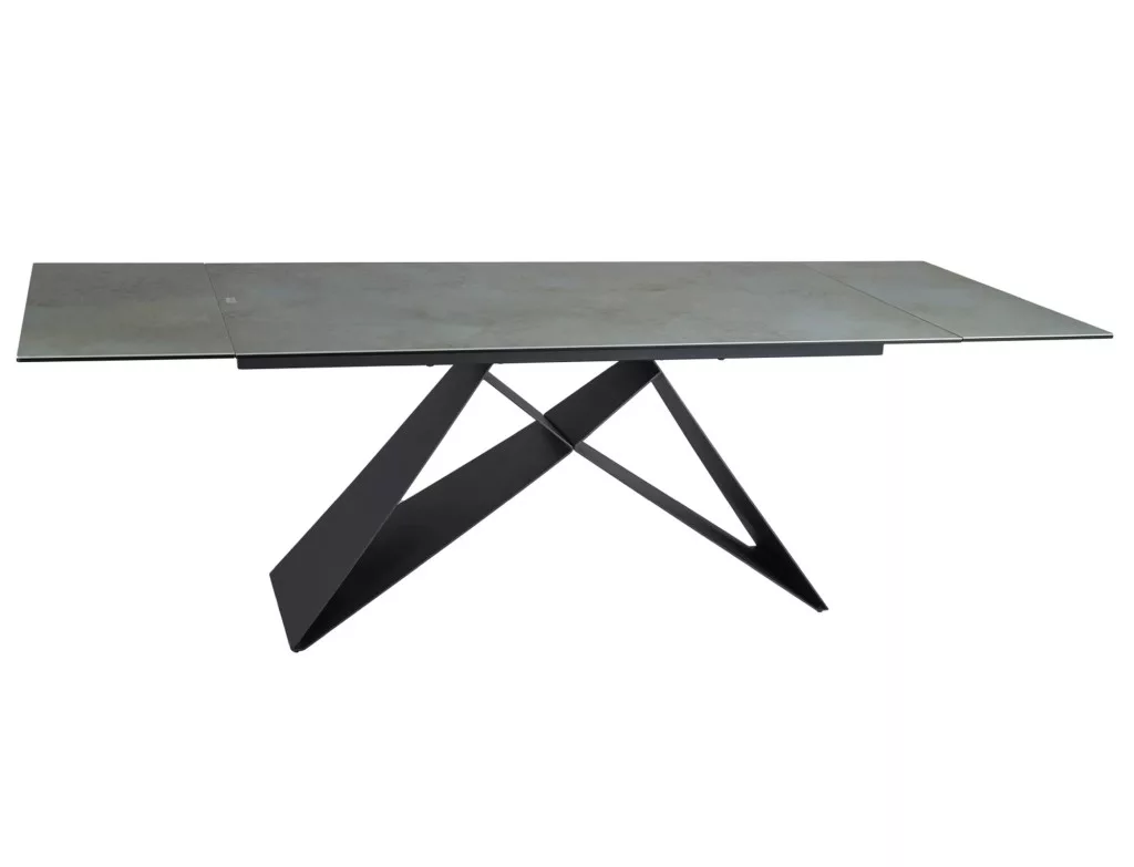 Meghosszabbítható asztal, teteje: edzett üveg + olasz OSSIDO VERDE kerámia, váz: fém, szín: türkiz / matt fekete.