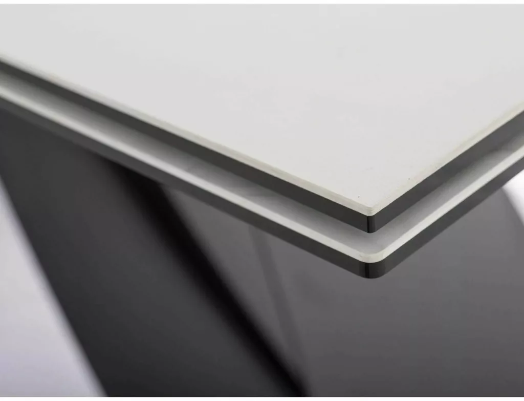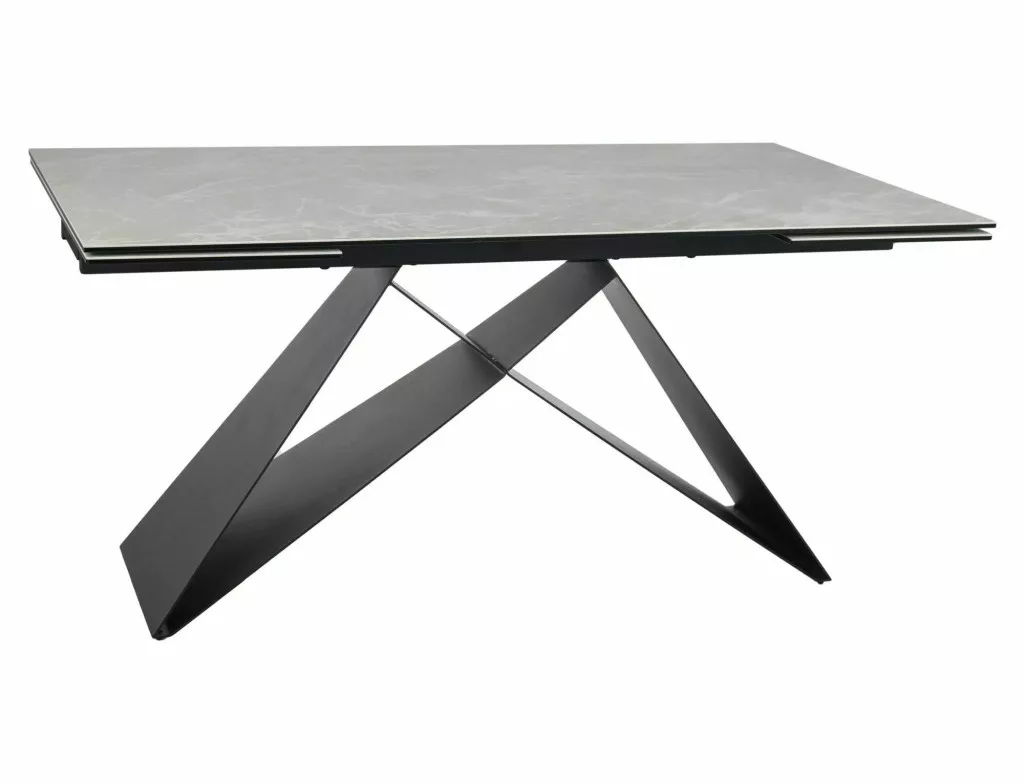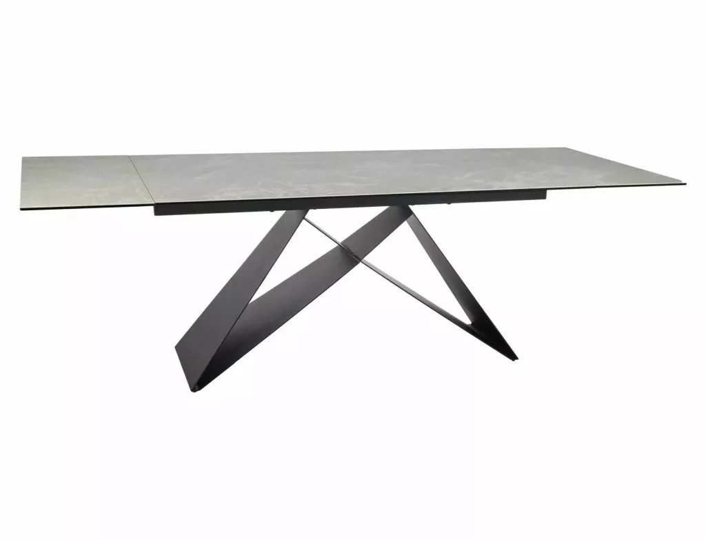Meghosszabbítható asztal, teteje: edzett üveg + DIAMOND CREAM kerámia, váz: fém, szín: matt krém / matt fekete.