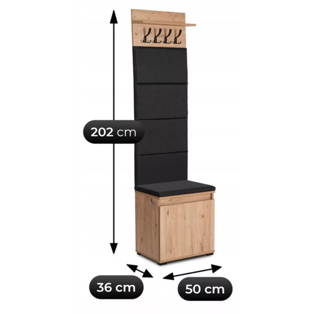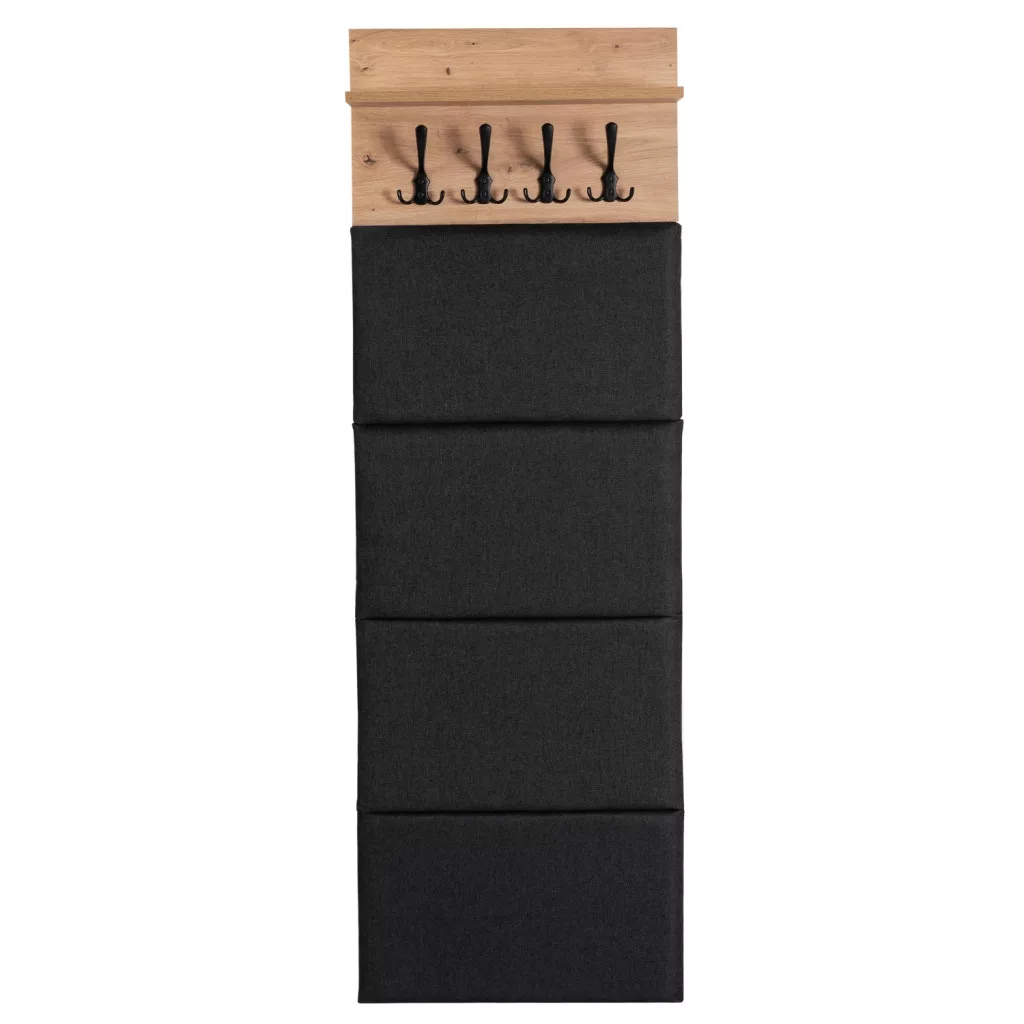 Modern előszoba garnitúra PARMA 50 cm, tölgy Artisan/grafit, forgácslapból. 4 akasztóval.