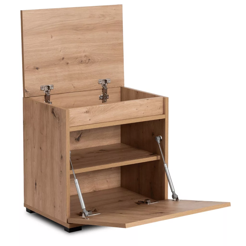A PARMA előszoba garnitúra 50 cm-es változata az egyik legkisebb és legkompaktabb előszoba-megoldás a piacon, amely mégis minden alapvető funkciót biztosít. A tölgy Artisan és grafit színkombináció modern, visszafogott eleganciát kölcsönöz a bútoroknak. Négy akasztója egy kisebb háztartás mindennapi ruháinak, kabátjainak és táskáinak tárolásához elegendő, és az 50 cm-es szélesség lehetővé teszi az elhelyezést a legszűkebb folyosón is. A bútor forgácslapból készült, tartós és könnyen kezelhető felülettel, amely ellenáll a mindennapi igénybevételnek. Az Artisan tölgy dekor meleg, természetes faerezetű megjelenést biztosít, a grafit alapszín pedig modern, letisztult karaktert ad a garnitúrának. Ez a kombináció könnyen illeszkedik bármilyen falszínhez és padlóhoz. A PARMA 50 cm-es verzió azoknak ideális, akik nagyon szűk előtérrel rendelkeznek, de nem akarnak lemondani a rendezett, mutatós megjelenésről. Tökéletesen passzol skandináv, minimál és modern stílusú lakásokhoz. Kis hely, nagy stílus – ez a PARMA 50 cm mottója.