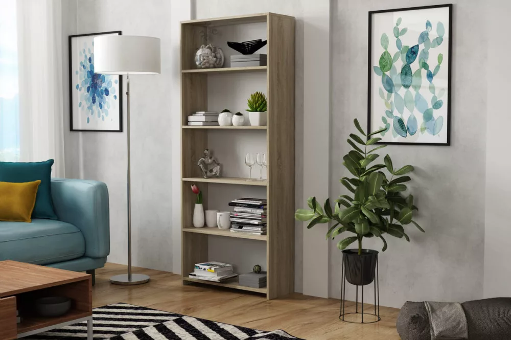 Helytakarékos kialakítású négypolcos könyvespolc. Ez a kis helyigényű könyvespolc tökéletes választás, ha már nincsen túl sok hely a szobában, mégis rendszerezetten szeretné tárolni a könyveket