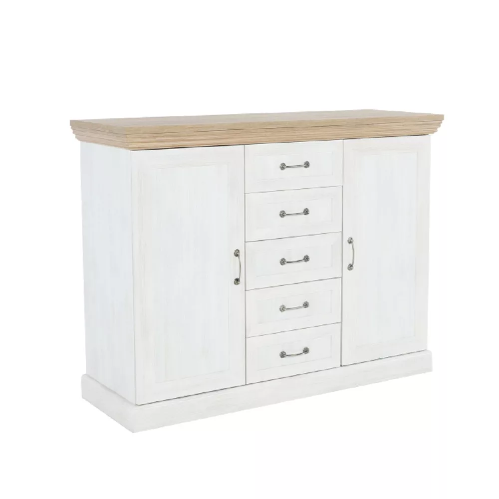 komód, 2-ajtós 5 fiókkal, északi sosna/vadtölgy, ROYAL K2D