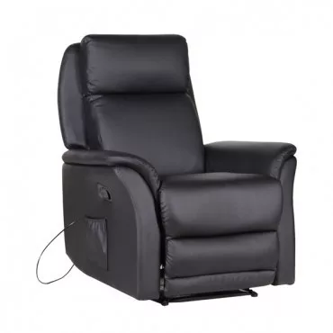 Kényelmes masszázs fotel PU kárpittal. Dönthető háttámlával. Távirányítóval beállítható, pihentető masszázs funkcióval.