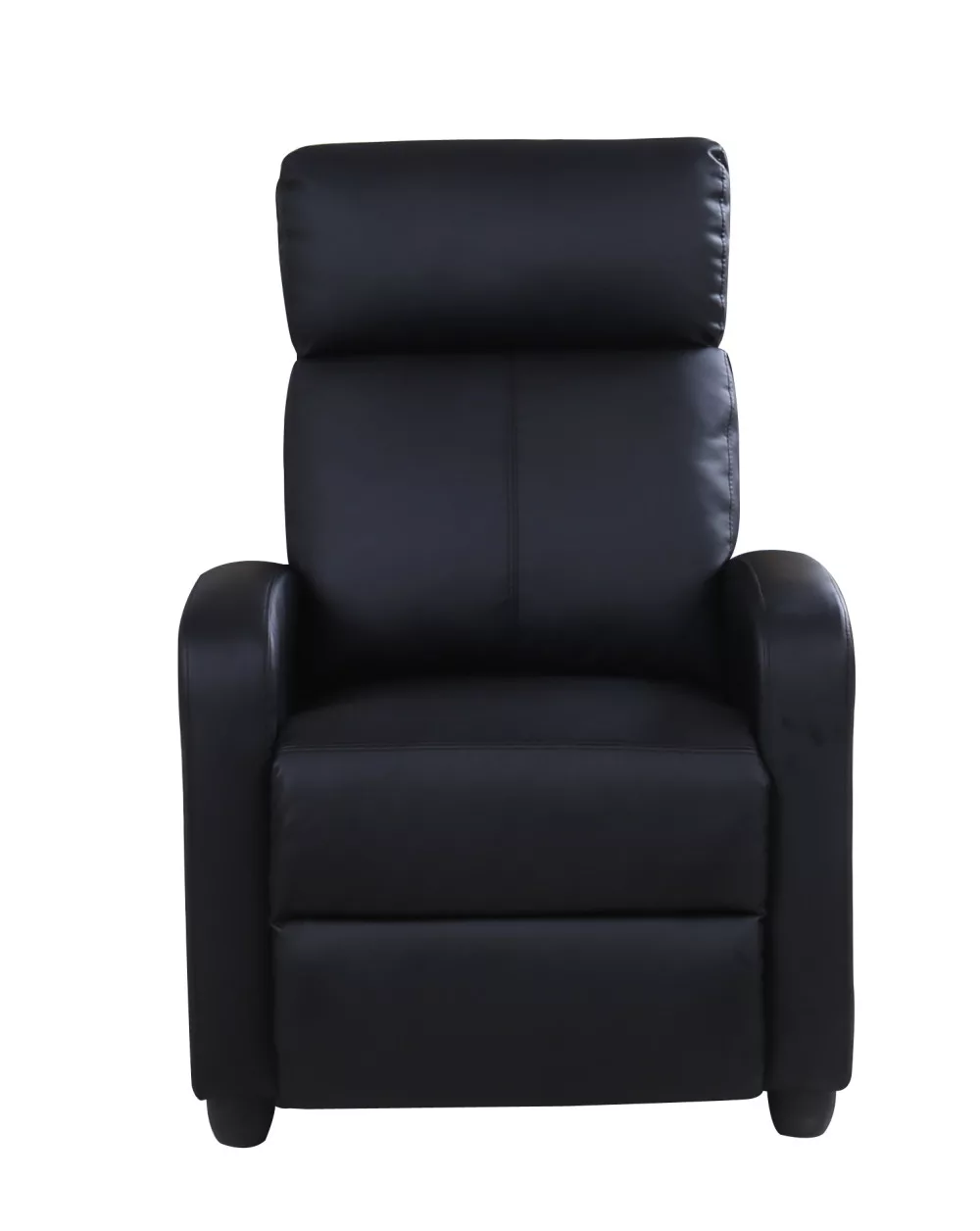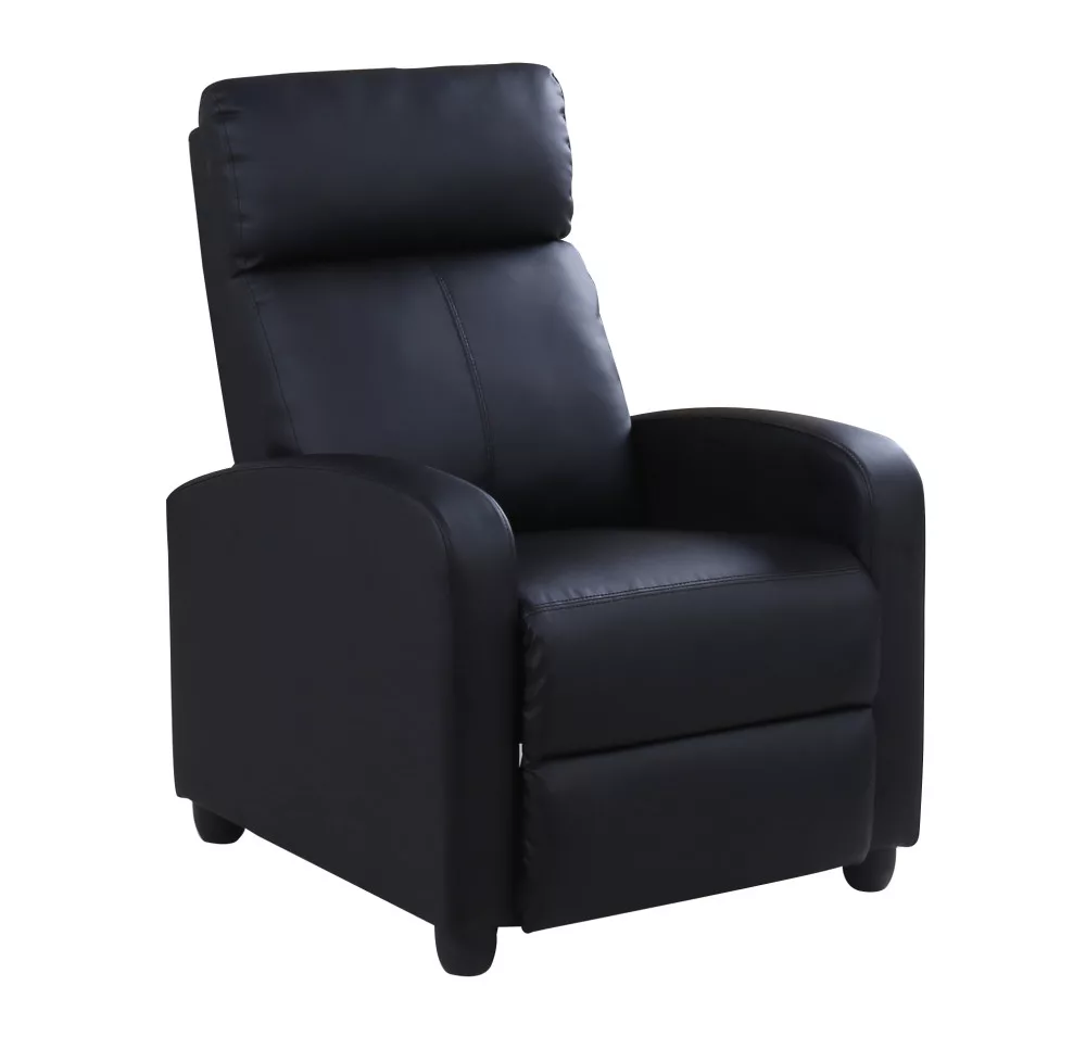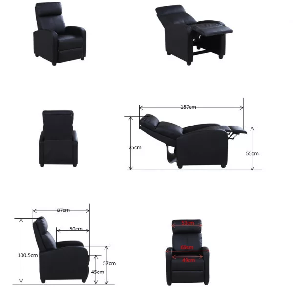 Kényelmes relax fotel, dönthető pozícióval. Anyaga fekete színű műbőr.