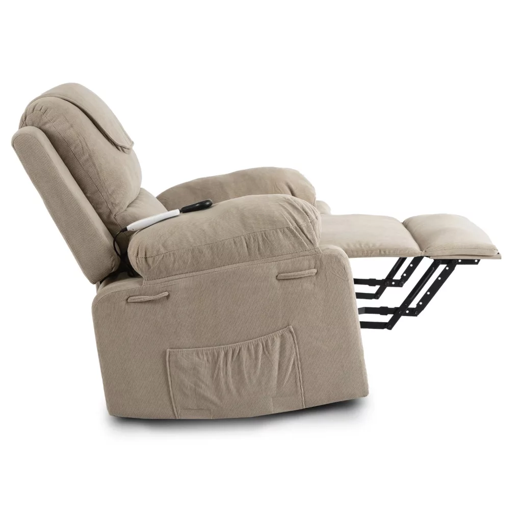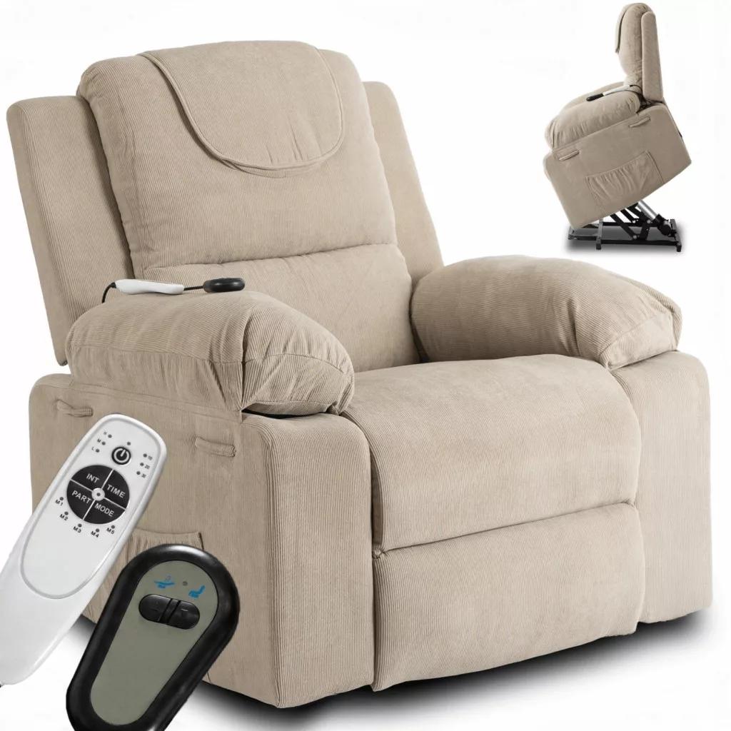 FENIX Elektromos Dönthető Masszázsfotel Felállási Funkcióval, Bézs Kordbársony