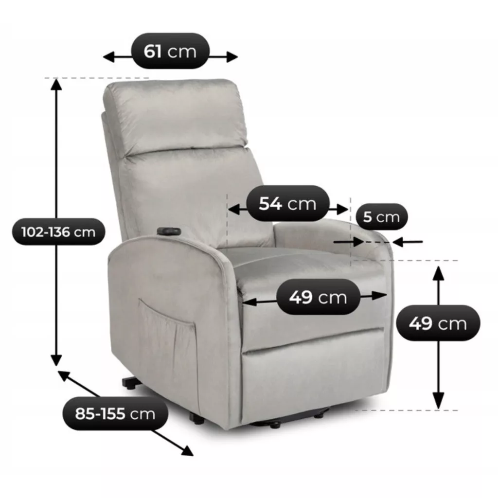 COLTON Elektromos Dönthető Fotel Felállási Funkcióval, Szürke Bársony