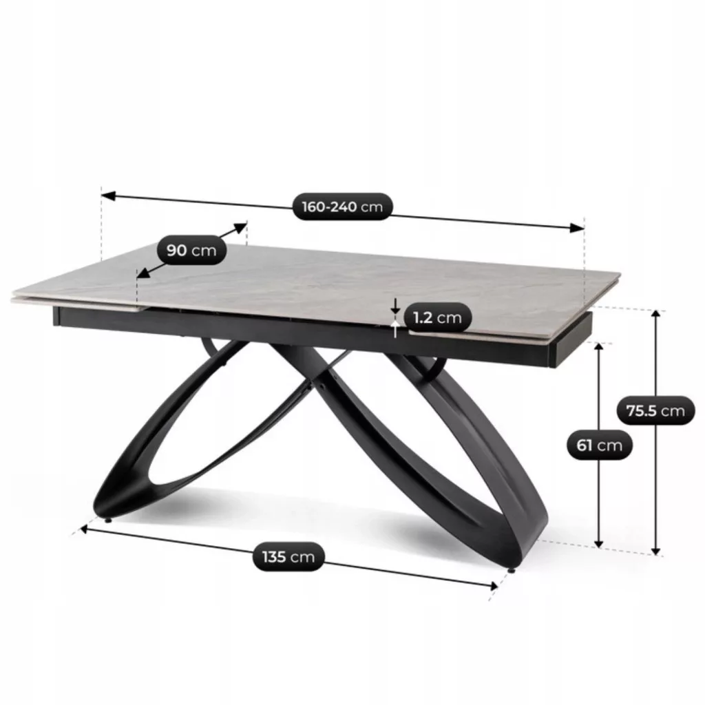 LUIGI kerámia kihúzható asztal 160-240 cm szürke márvány/fekete