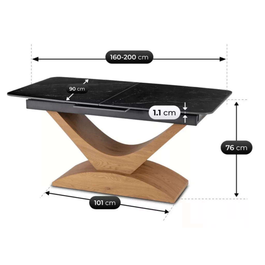 ALICANTE Kerámia Kihúzható Asztal 160-200 cm Fekete Márvány/Tölgyfa