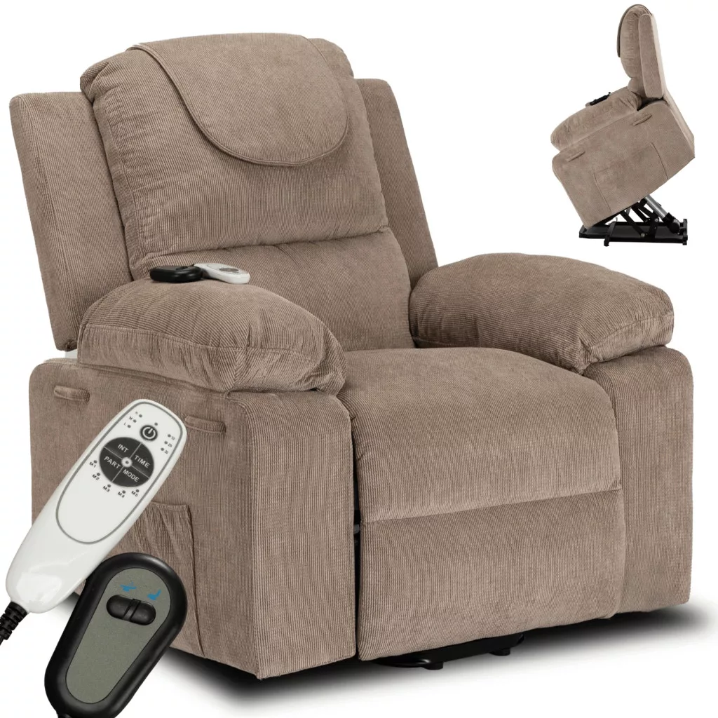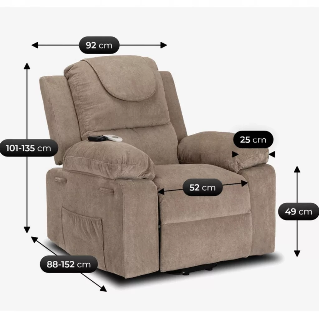FENIX Elektromos Dönthető Masszázsfotel Felállási Funkcióval, Bézs