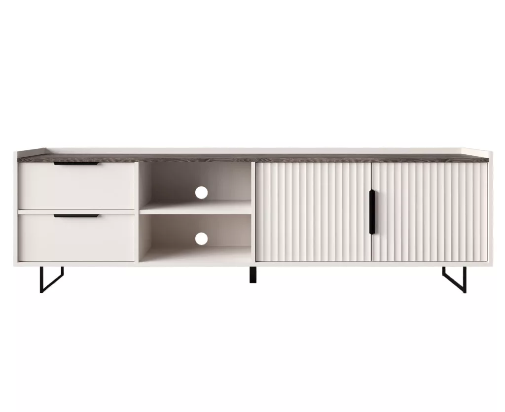 Modern, letisztult vonaltervezésű nappalisorunk elegáns és praktikus megoldást kínál bármely otthonba. A függőleges bordázott ajtók finom textúrát adnak a bútornak, miközben megőrzik a minimalisták által kedvelt egyszerűséget. A széles Tv szekrény tágas tárolóhelyet bizotsít. A karcsú, fekete lábak stabil tartást adnak, ugyanakkor modern megjelenést kölcsönöznek.