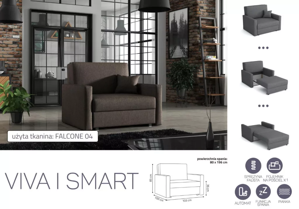 VIVA SMART I előre nyíló rugós, ágyneműtartós fotelágy Falcone 4 színben