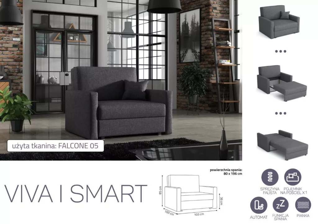 VIVA SMART I előre nyíló rugós, ágyneműtartós fotelágy Falcone 5 színben