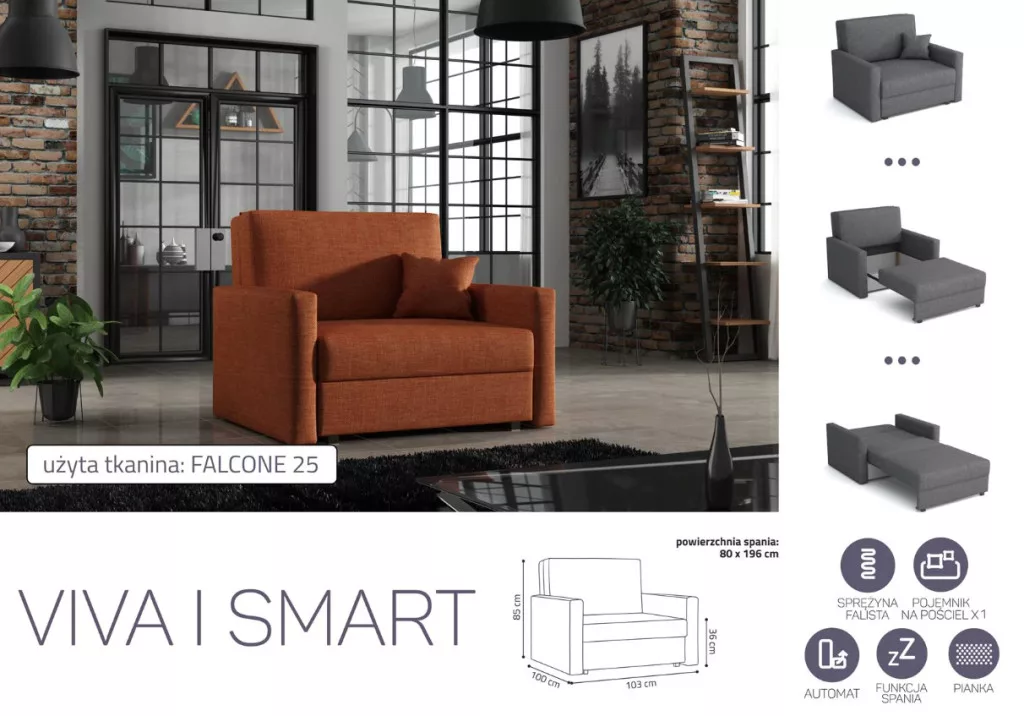 VIVA SMART I előre nyíló rugós, ágyneműtartós fotelágy Falcone 25 színben