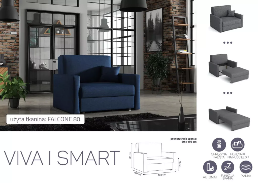 VIVA SMART I előre nyíló rugós, ágyneműtartós fotelágy Falcone 80 színben