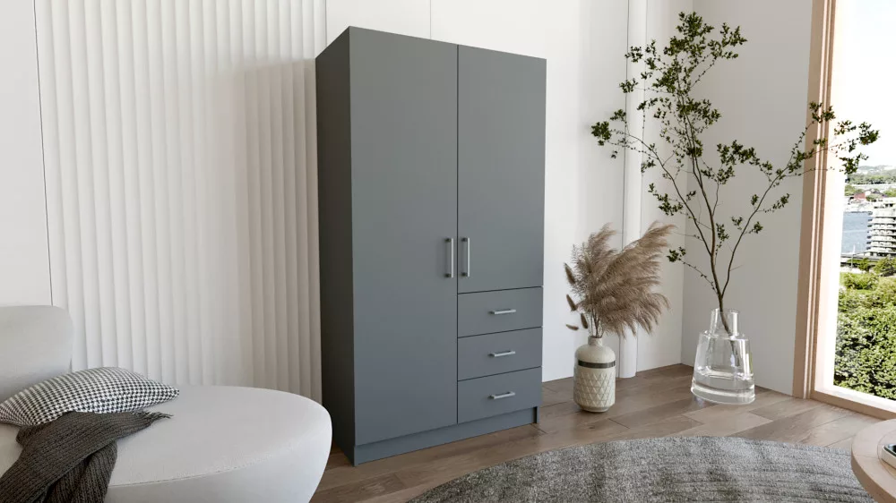 Pino III. akasztós, polcos, fiókos gardróbszekrény 96 cm szürke színben