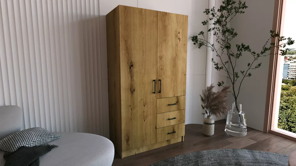 Pino III. akasztós, polcos, fiókos gardróbszekrény 96 cm artisan színben