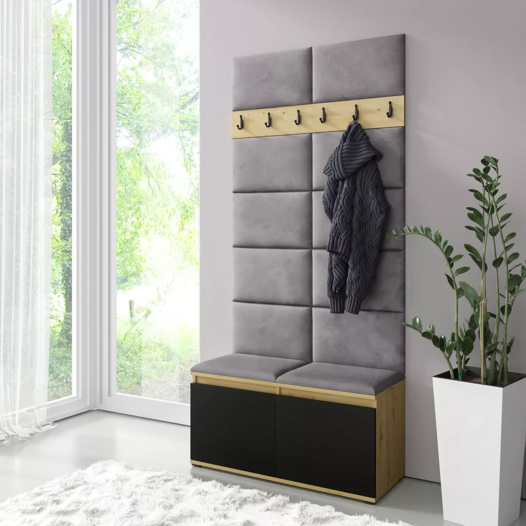 Blum 1 kárpitozott előszobafal, artisan/fekete - ezüst 33 - egyedi