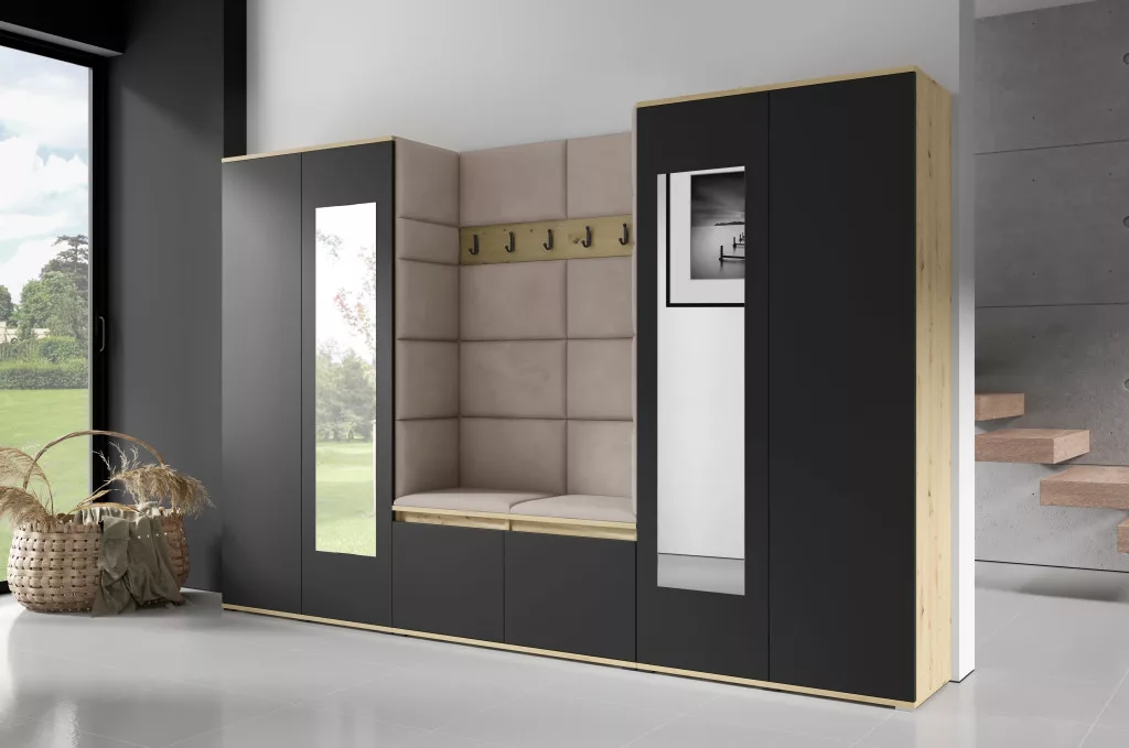 Blum 10 kárpitozott előszobafal tükörrel, artisan/fekete - barna 05