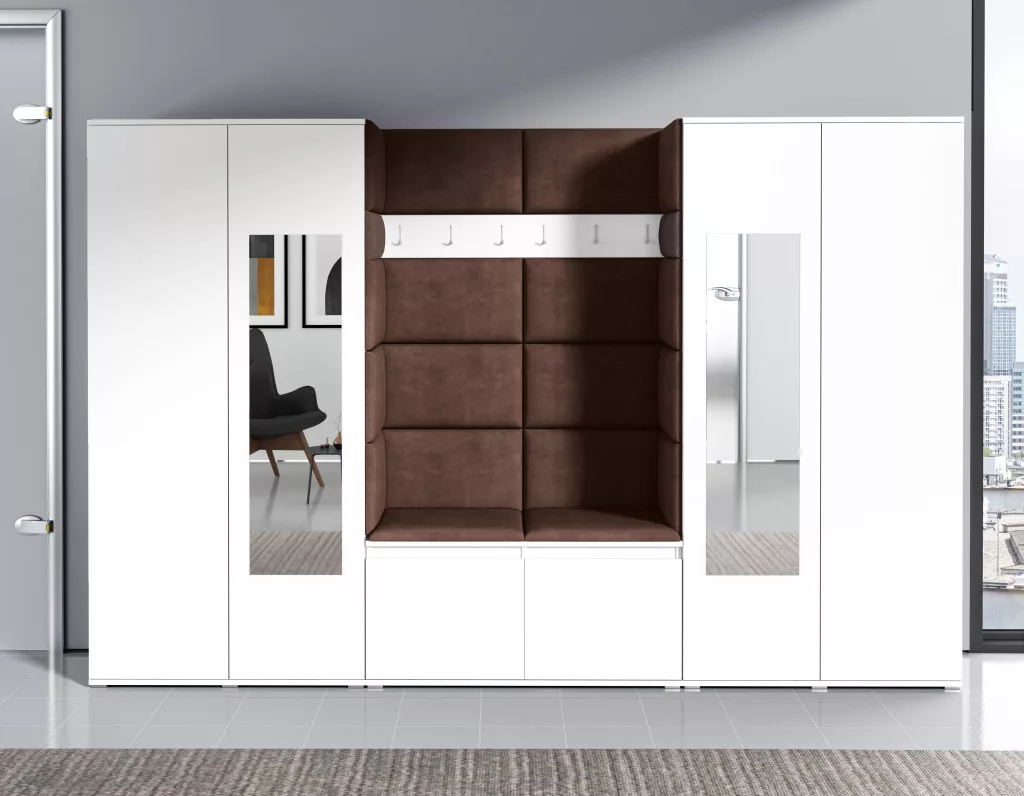 Blum 10 kárpitozott előszobafal tükörrel, fehér - barna 07