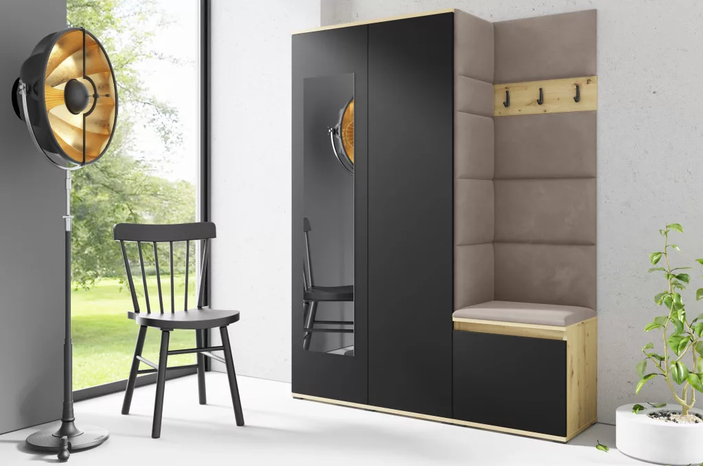 Blum 11 kárpitozott előszobafal tükörrel, artisan/fekete - barna 05