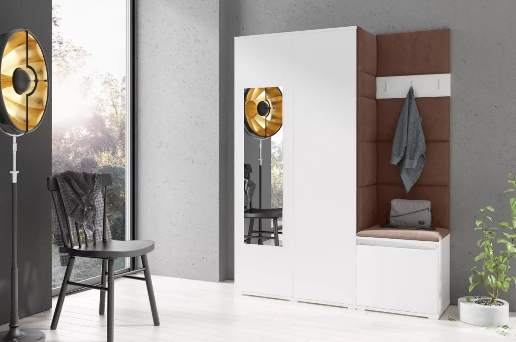 Blum 11 kárpitozott előszobafal tükörrel, fehér - barna 07