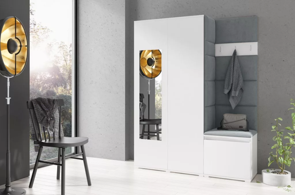 Blum 11 kárpitozott előszobafal tükörrel, fehér - szürke 14