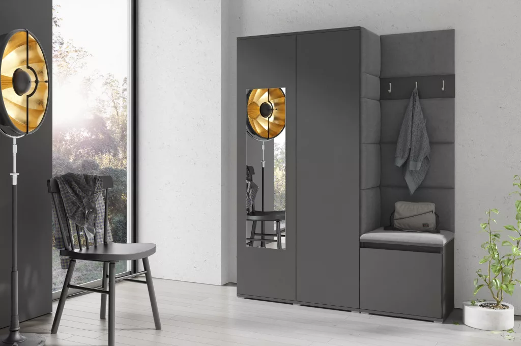 Blum 11 kárpitozott előszobafal tükörrel, grafit - szürke 15