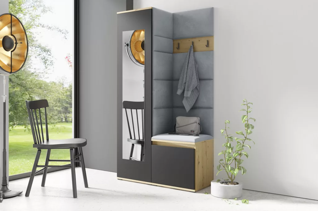 Blum 13 kárpitozott előszobafal tükörrel, artisan/fekete - szürke 14