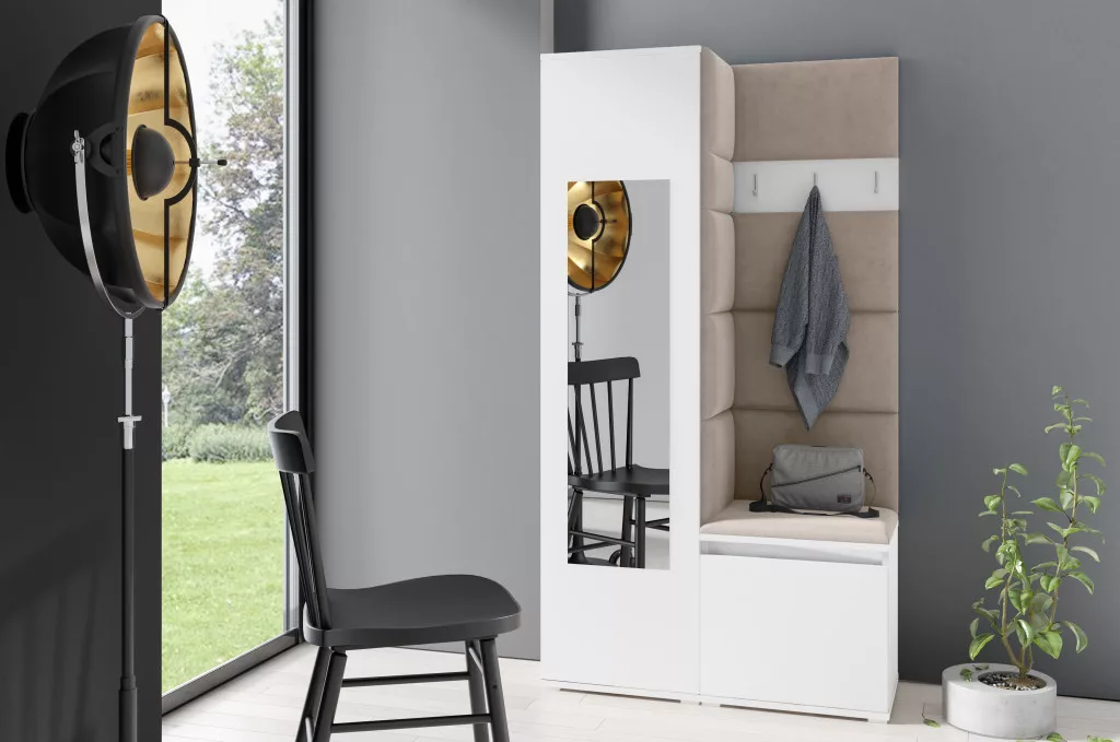 Blum 13 kárpitozott előszobafal tükörrel, fehér - bézs 03