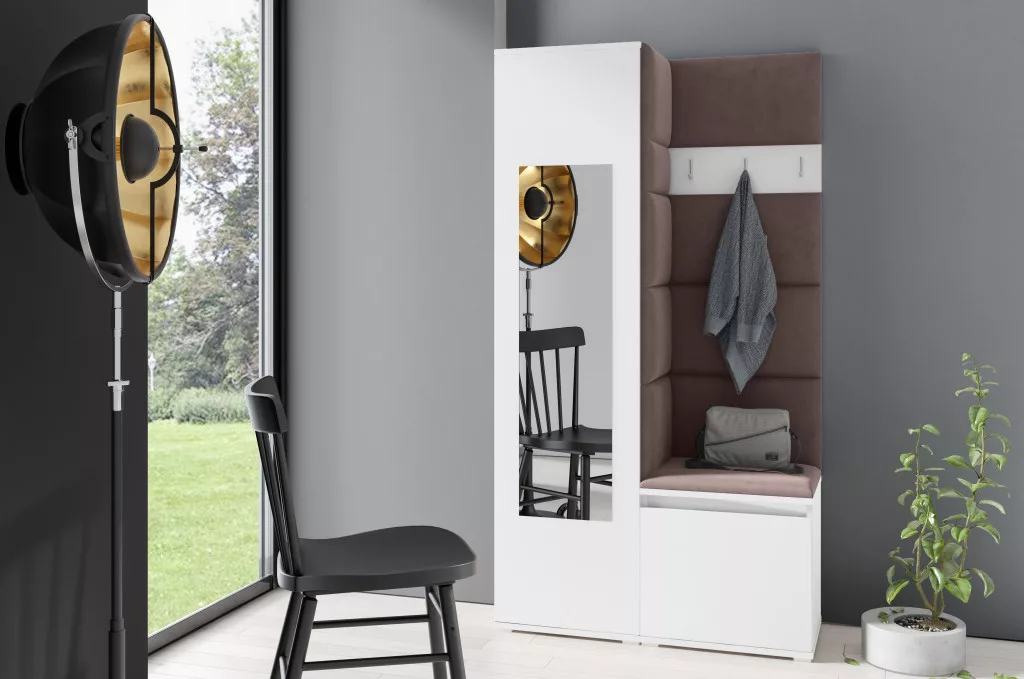 Blum 13 kárpitozott előszobafal tükörrel, fehér - barna 08