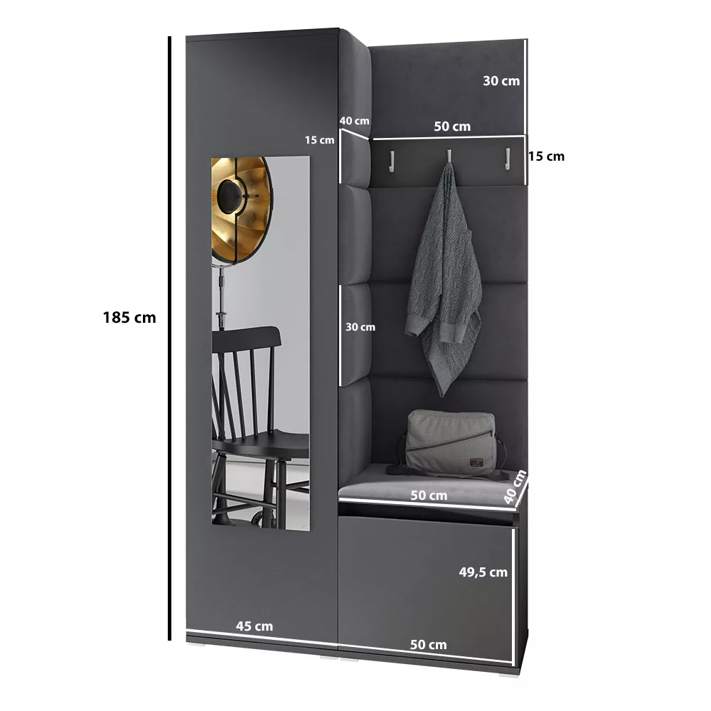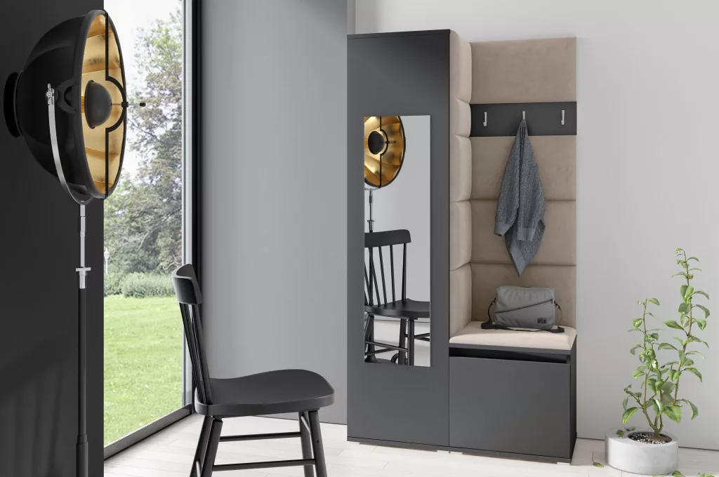 Blum 13 kárpitozott előszobafal tükörrel, grafit - bézs 03