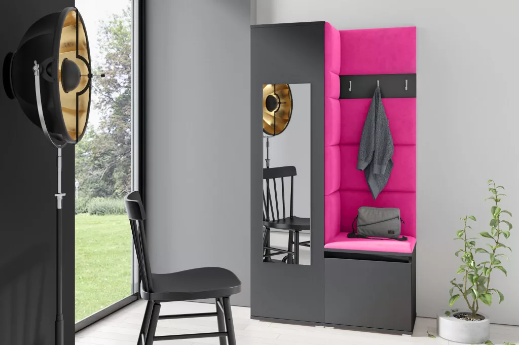 Blum 13 kárpitozott előszobafal tükörrel, grafit - pink 10 - egyedi