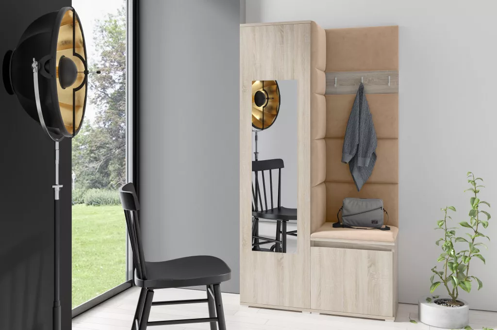 Blum 13 kárpitozott előszobafal tükörrel, sonoma - bézs 04