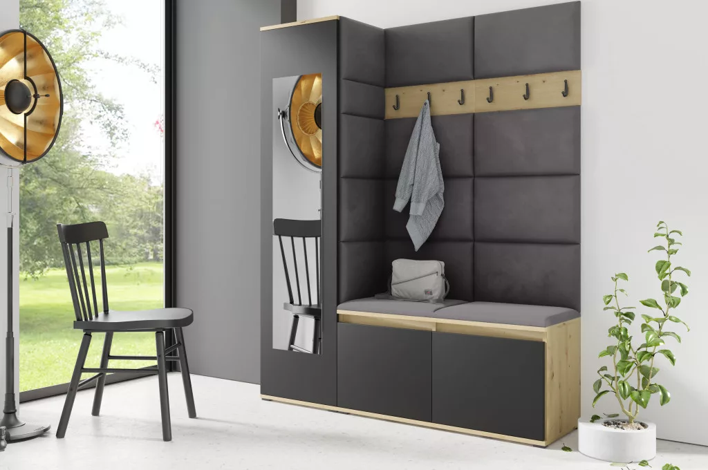 Blum 14 kárpitozott előszobafal tükörrel, artisan/fekete - szürke 34