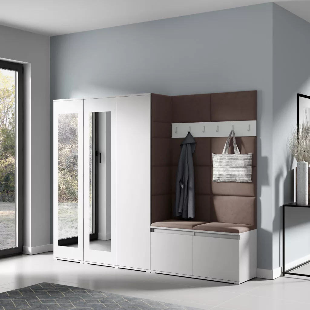 Blum 15 kárpitozott előszobafal tükörrel, fehér - barna 08