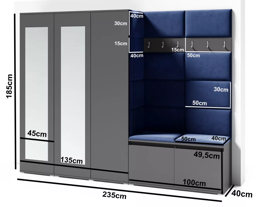 A kárpitozott paneleket közvetlenül a falra, a szekrényre és a cipőtartóra kell rögzíteni ragasztó segítségével. A ragasztót a csomag nem tartalmazza.